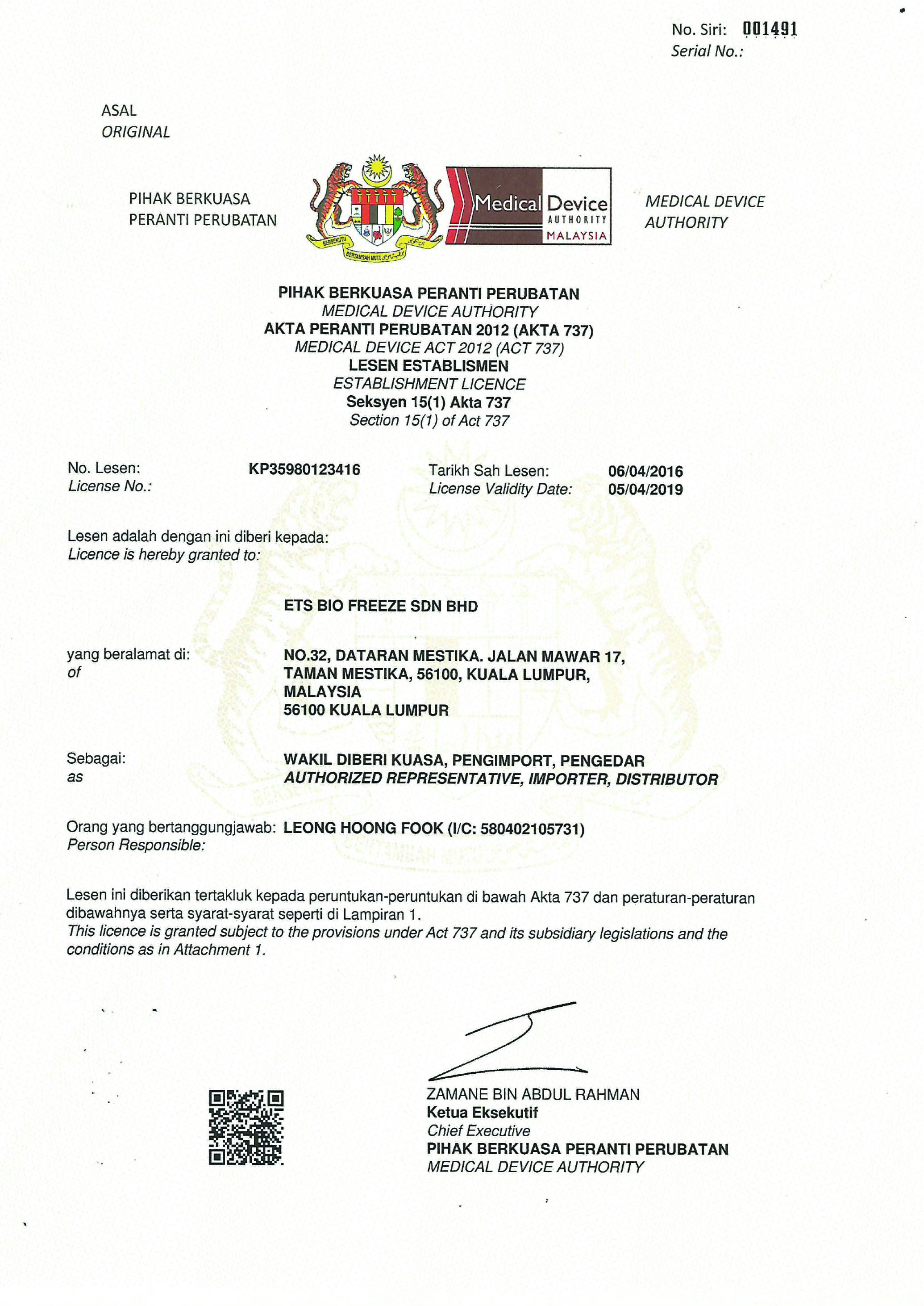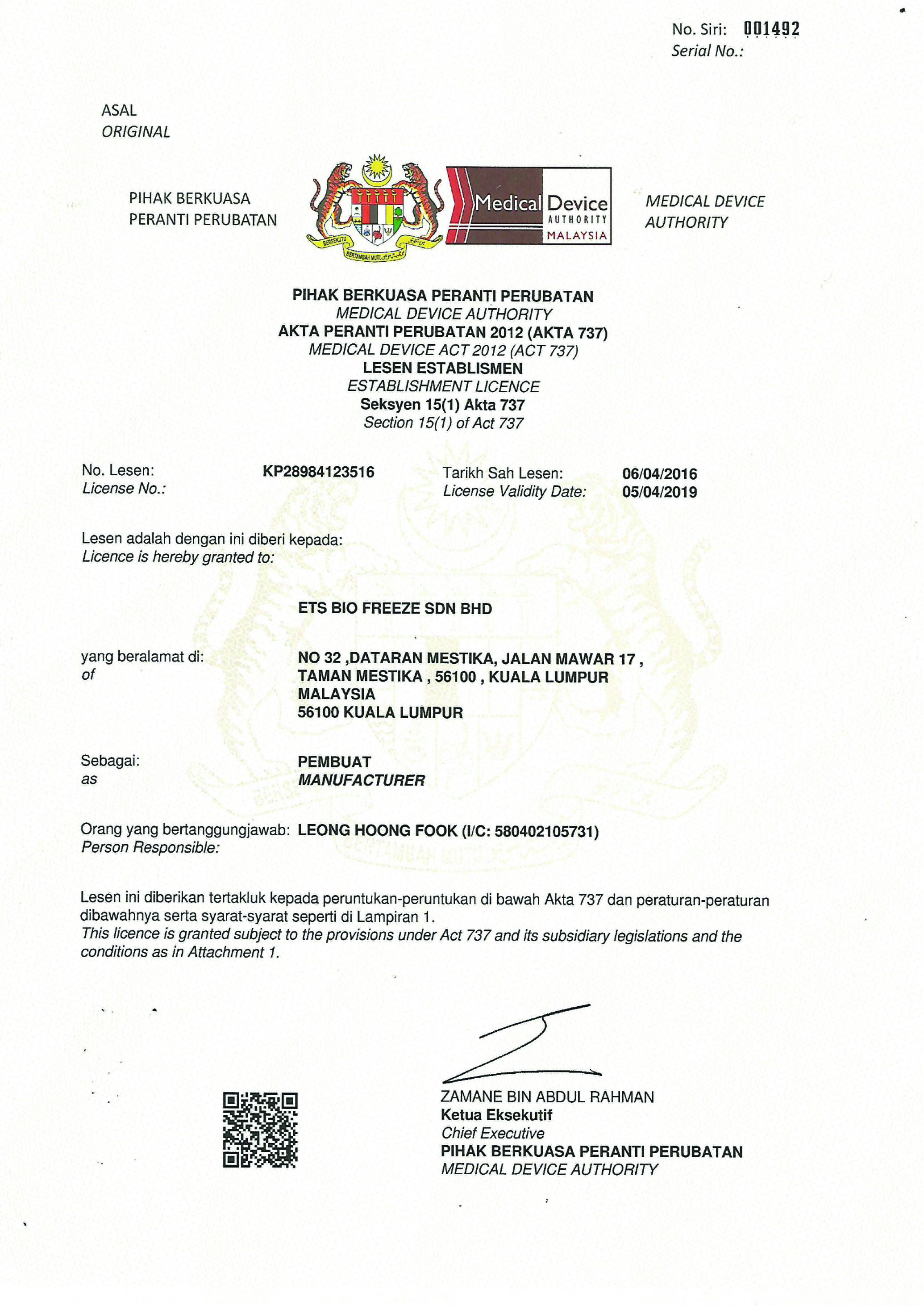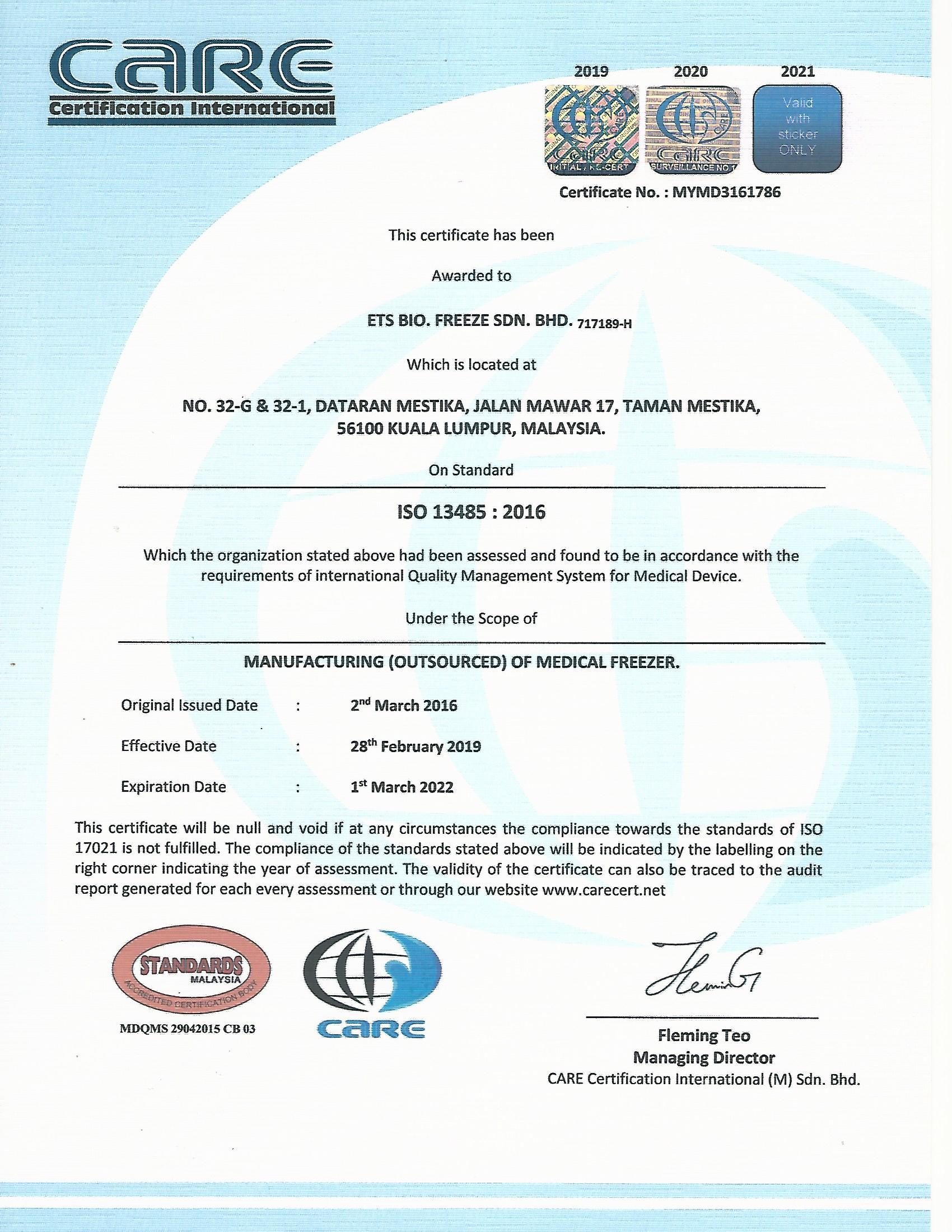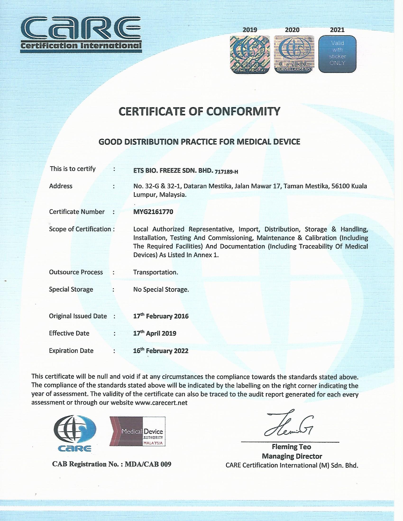 We have successfully maintained a perfect quality assurance system, and are certified to the International Standard ISO 13485 – Quality Management System for Medical Devices. In accordance with the Medical Device Act 2012 (Act 737) – Regulation 8 Medical Device Regulation 2012), we have also registered our devices with the Medical Device Authority (MDA) and are GDPMD certified.