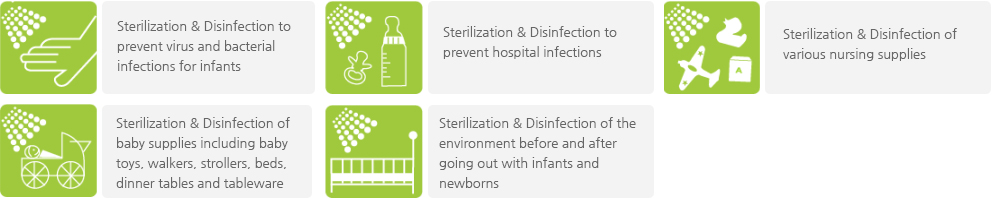 presents no irritation by using raw materials approved by the USFDA (No.178.1010), and it is third-generation disinfectant capable of sterilizing 99.9% of pathogenic bacteria in less than 30 seconds, including virus (Inf, HSV), general bacteria, tubercle bacillus, MRSA and staphylococcus aureus, as well as even fungus such as shigella and candida. It can be safely and conveniently used as it is a colorless, odorless and water-sensation disinfectant for babies without causing irritations to skin, skin mucous and eyes while promptly sterilizing various viruses, causative bacteria for infant infection, as well as harmful bacteria.