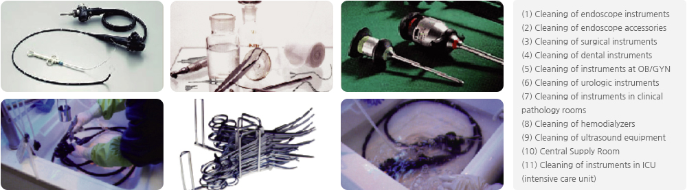 With excellent preventive effects of instrumental damages, anti-corrosion and bactericidal power as multi-purpose neutral detergent (pH 7.5), it can be safely used on ultrasound machine cleaner and automatic cleaner in addition to cleaning by hands.