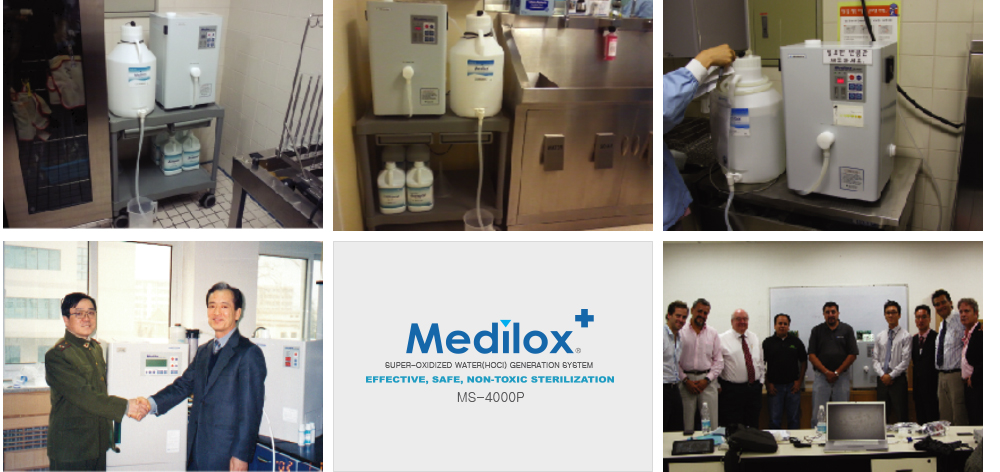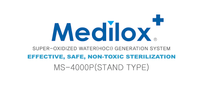 medilox_ms_4000p_tit.jpg is an equipment generating high-level disinfectant internationally certified by European CE (ClassⅡb) and the USFDA after the company has developed Medilox generating Hypochlorous acid (HOCl) generated from immune system of human body based on the patented new technology of the company in order to improve pathogenic infection control and treatment environment.